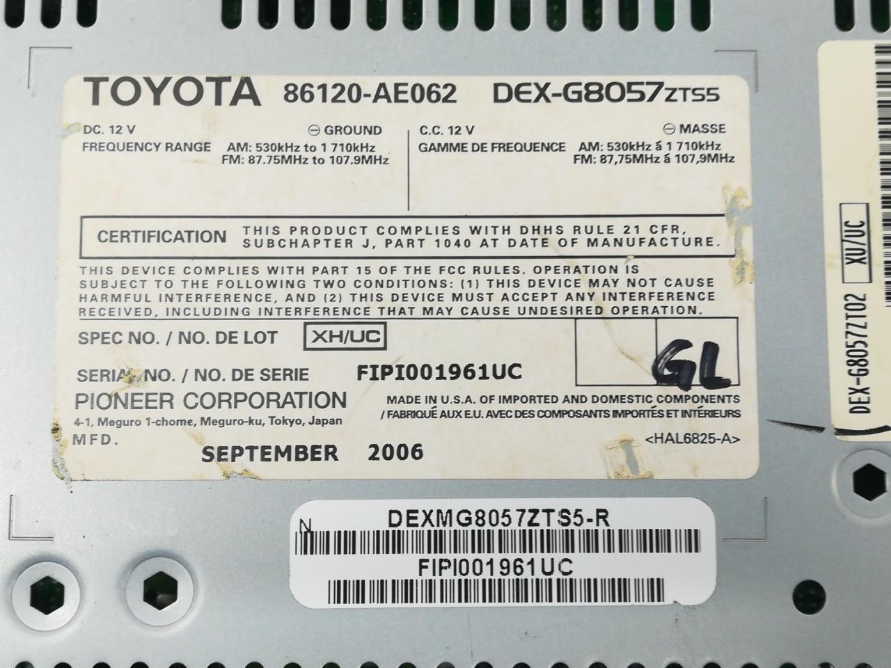 Магнитола Toyota Sienna 2 рест. 2007